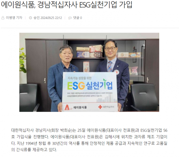 - 이전글에이원식품, 경남적십자사 ESG실천기업 56호 25.11.21