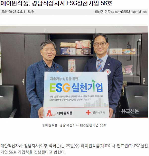 에이원식품, 경남적십자사 ESG실천기업 56호